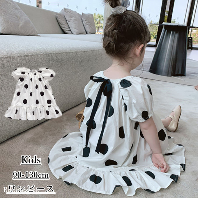 ワンピース 女の子 子ども服 子供服 ひざ丈 水玉柄 ひざワンピース キッズ 半袖ワンピ ワンピ 韓国子供服 保育園 幼稚園 可愛い オシャレ 夏物 新作 送料無料