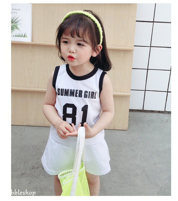 子供服 赤ちゃん キッズ 女の子 ノースリーブ 袖なし プリント 上下セット インナーパンツ付 パンツセットアップ トレーナー 韓国子供服 運動服 ゆったり 夏物