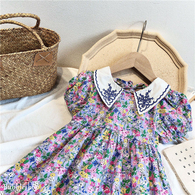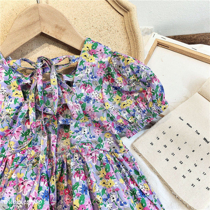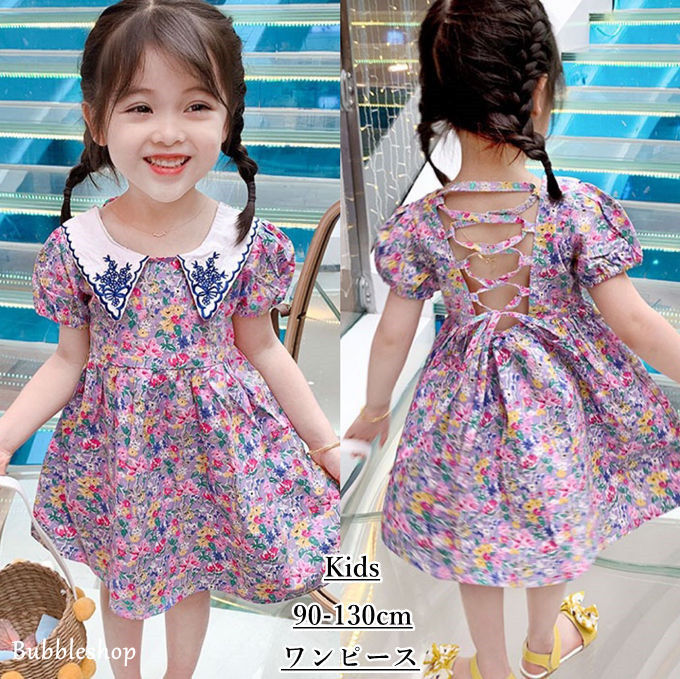 シフォンワンピース 女の子 子ども服 韓国子供服 プリント 花柄 半袖ワンピ ひざワンピース ふんわり ギフト ジュニア 保育園 幼稚園 可愛い 夏物 送料無料