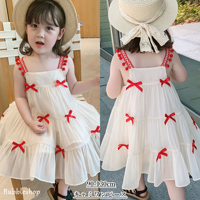キャミワンピース 女の子 子ども服 韓国子供服 蝶結び ノースリーブ ひざワンピース ふんわり ギフト ジュニア 保育園 幼稚園 オシャレ 可愛い 夏物