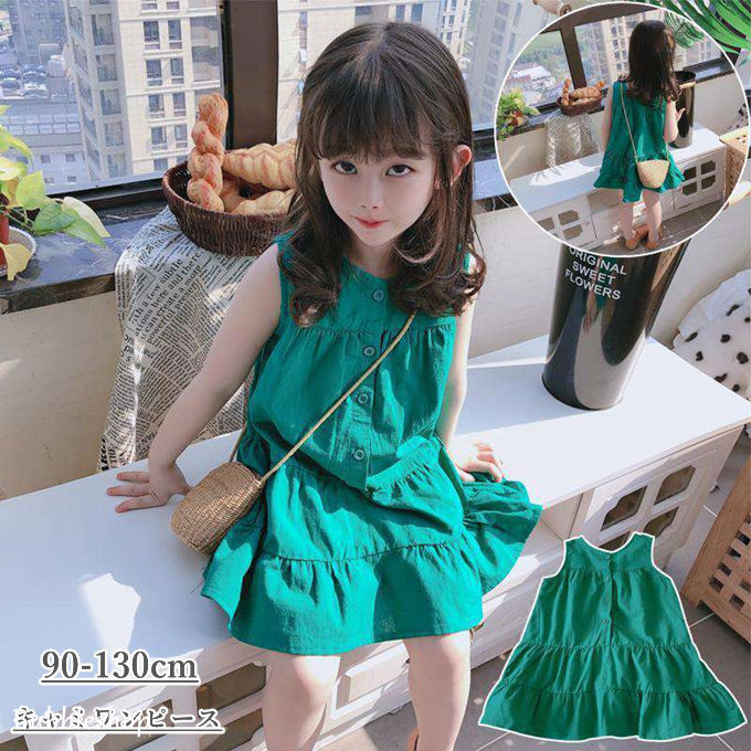 キャミワンピース 女の子 子ども服 韓国子供服 ノースリーブ 無地 ひざワンピース フレア ふんわり ゆったり ジュニア 保育園 幼稚園 オシャレ 可愛い 夏物