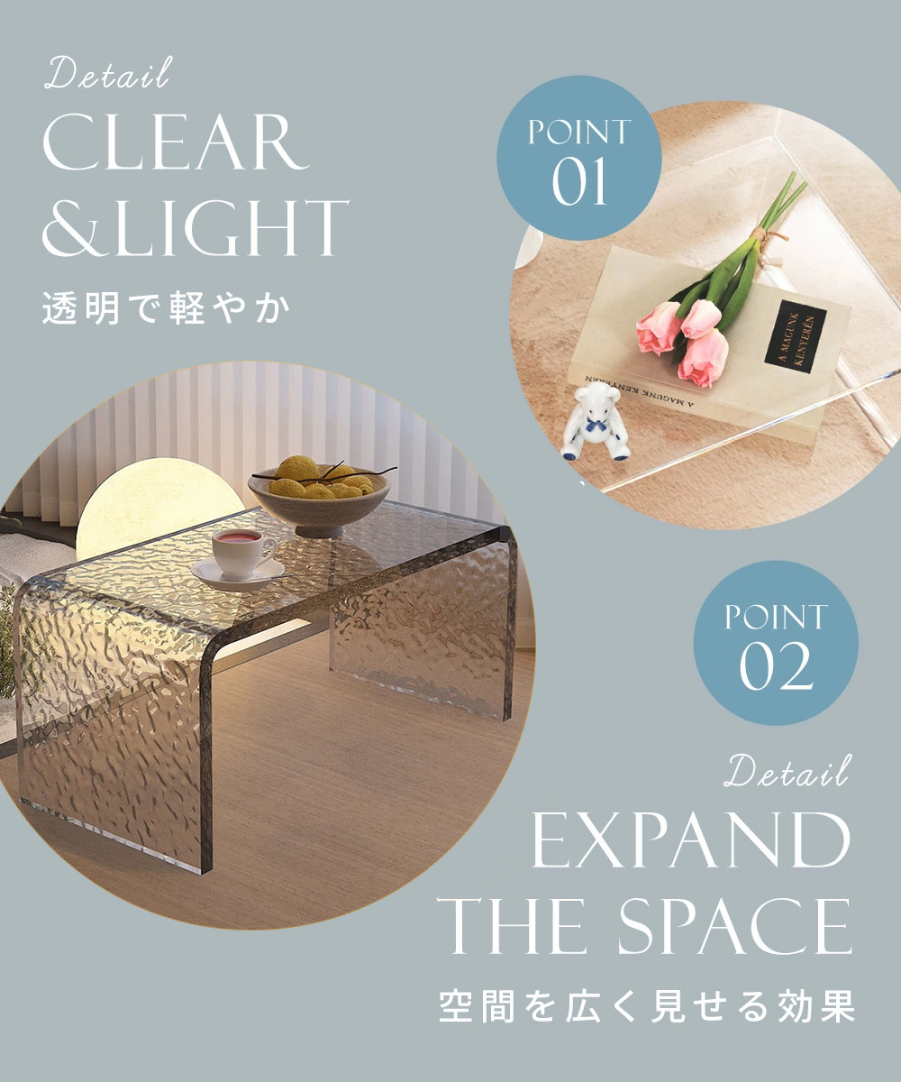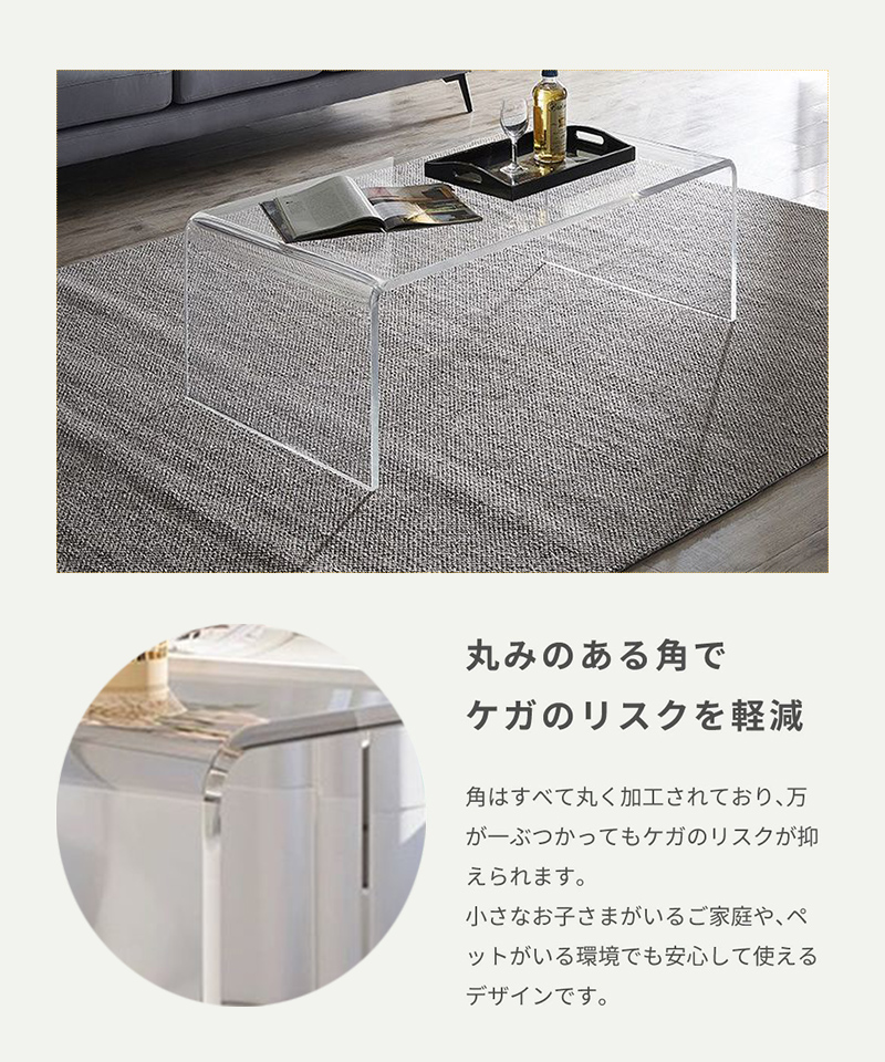 アクリルテーブル テーブル コーヒーテーブル センターテーブル リビングテーブル厚み8mm 収納 おしゃれ 割れにくい クリア 子供 キッズ おしゃれ 一人暮らし