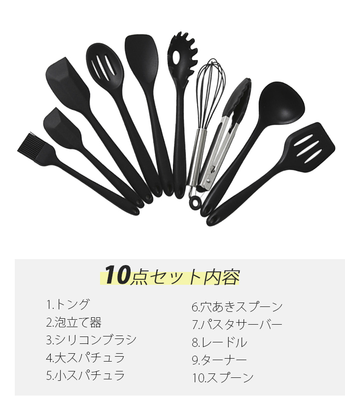 スーパーセール 年末セール キッチンツールセット シリコン 調理器具 製菓器具 ツール10点セットフライ返し おたま トング ヘラ トング 泡立て