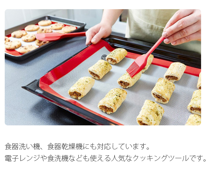 耐熱性抜群で-40の低温から220℃の高温まで対応できます。食用シリコーン素材で作られており、無毒で無味であり、安全に使用することができます。食器洗い機、食器乾燥機にも対応しています。電子レンジや食洗機なども使える人気なクッキングツールです。
