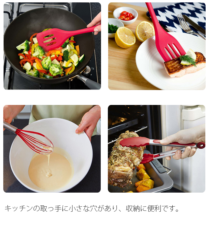 1.シリコン製で、食材や鍋・器を傷めませんキッチンツール