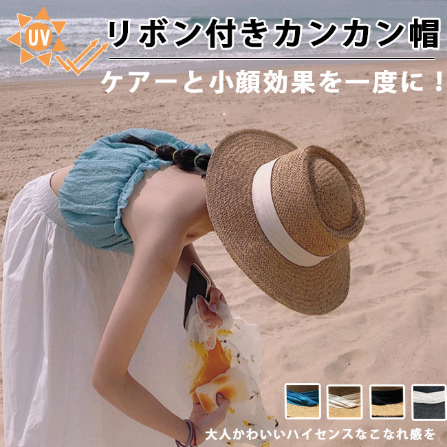 スーパーセール 2024春夏新作 レディース 帽子 ストローハット 麦わら帽子 カンカン帽 UV リボン付き 紫外線対策 小顔効果