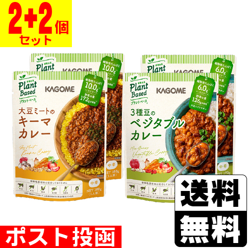 (カゴメ)大豆ミートのキーマカレー 180g +3種豆のベジタブルカレー 170g(各2個 計4個セット)
