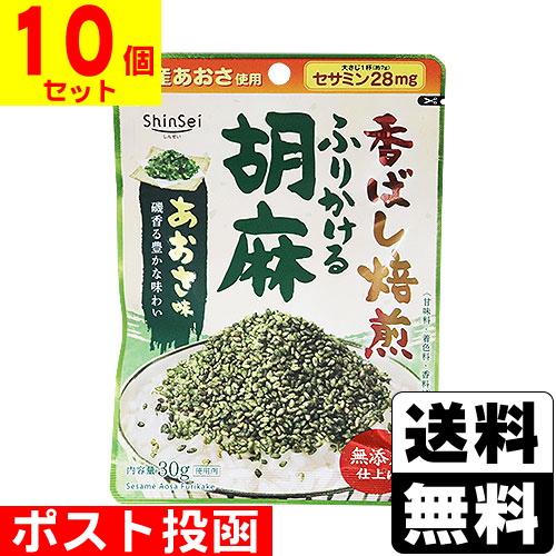 (ポスト投函)(真誠)無添加ふりかける胡麻 あおさ味 30g(10個セット)