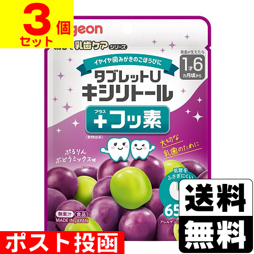 (ポスト投函)(ピジョン)タブレットU キシリトール+フッ素 ぶどうミックス味 65粒入(3個セット)