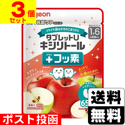 (ポスト投函)(ピジョン)タブレットU キシリトール+フッ素 りんごミックス味 65粒入(3個セット)