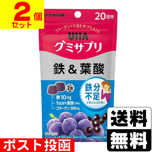 (ポスト投函)(UHA味覚糖)UHA(ユーハ) グミサプリ 鉄&葉酸 アサイーミックス味 20日分(40粒入)(2個セット)