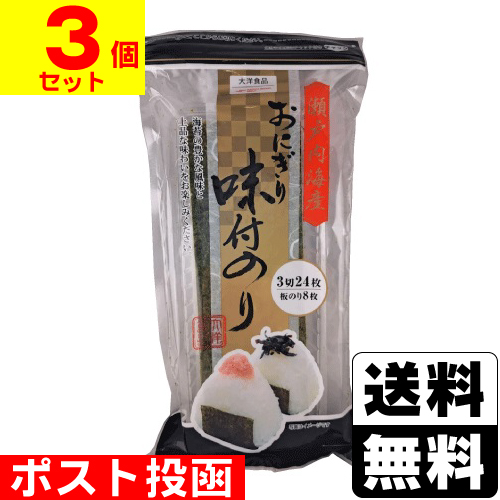 (ポスト投函)瀬戸内海産 おにぎり味付のり 3切24枚入 (板のり8枚入)(3個セット)