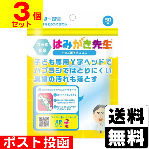 (ポスト投函)(オカムラ)はみがき先生 キッズ用Y字フロス 奥歯がはえてきたら 30本入(3個セット)