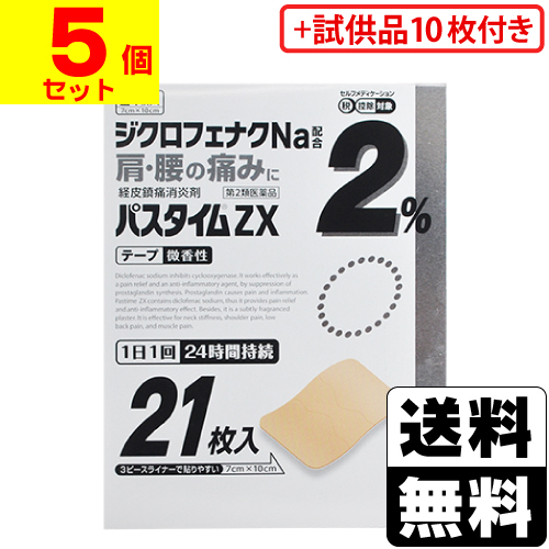 (第2類医薬品)(セ税)(試供品10枚プレゼント)(祐徳薬品)パスタイムZX 21枚(5個セット)