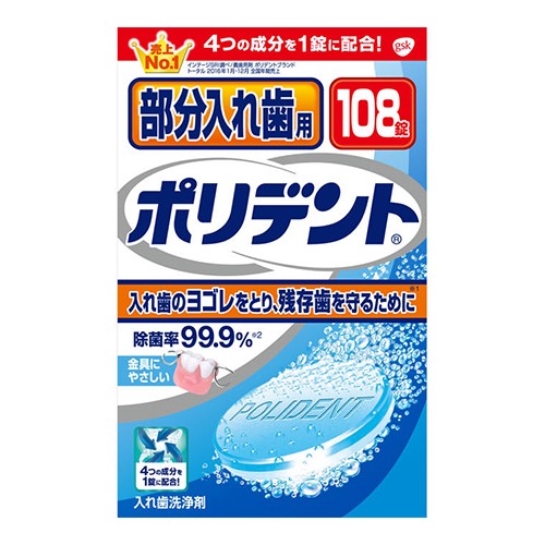 ●部分入れ歯用ポリデントは、部分入れ歯のための入れ歯洗浄剤です。