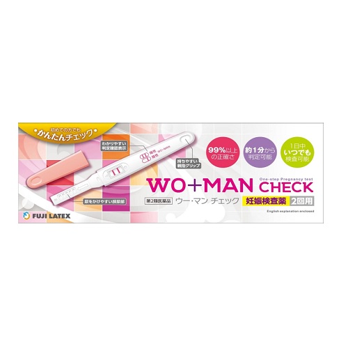 妊娠するとhCGと呼ばれるヒト絨毛性性腺刺激ホルモンが尿中に排泄されるようになります。ウー・マン チェックは、金コロイド標識抗β-hCGマウスモノクローナル抗体と捕捉抗体である抗α-hCGマウスモノクローナル抗体を用いた免疫クロマトグラフ法により、尿中のhCGを検出する妊娠検査用キットです。この検査薬は妊娠しているかどうかを補助的に検査するものであり、妊娠の確定診断をおこなうものではありません。