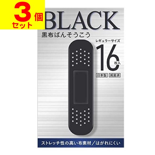 (ポスト投函)黒布ばんそうこう スタンダード 16枚入(3個セット)