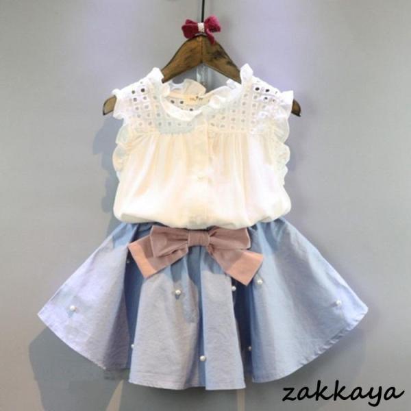 子供服 セットアップ 女の子 キッズ 綿半袖 春夏着 上下セット 2点セット 韓国子供服 ジュニア スカート 無地 サロペット 可愛い おしゃれ 通学着