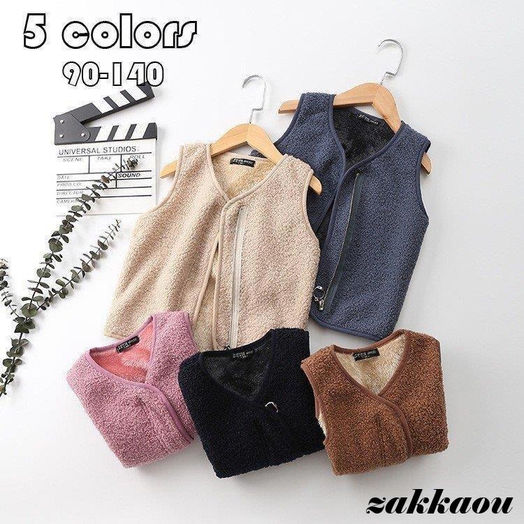 ベスト キッズ 子供服 男女兼用 アウター vネック 無地 ファスナー ベスト 防寒保温 ボア もこもこ シンプル フリース インナーベスト 秋冬
