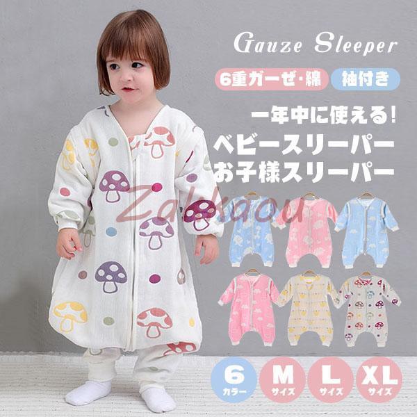 スリーパー 6重ガーゼ 袖付き おくるみ 寝袋 防寒 パジャマ 蹴れない寝袋 赤ちゃん 新生児 キッズ ベビー 男の子 女の子 ふわふわ お昼寝 コットン ファスナー