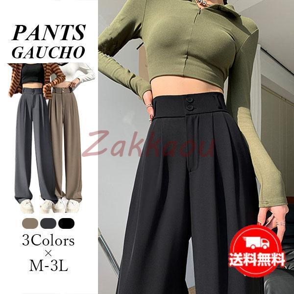 ワイドパンツ ガウチョパンツ レディース ハイウエスト ボトムス 大きいサイズ ゆったり 涼しい 体型カバー 垂れ感 速乾 美脚 春 夏コーデ 30代 40代
