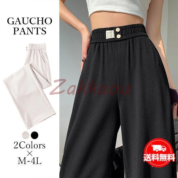 ガウチョパンツ ワイドパンツ レディース ウエストゴム ハイウエスト ひんやり ゆったり ストレッチ イージーパンツ 大きいサイズ 着痩せ 美脚 体型カバー