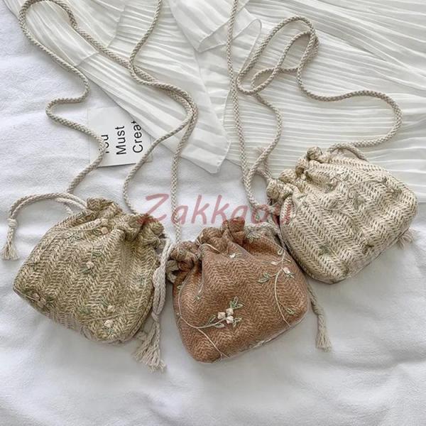 かごバッグ レディース ショルダーバッグ 斜めがけ 麦わらバッグ ピクニック 斜めがけ 海 ビーチ 夏バッグ 麦わらバッグ 軽量 かわいい 草編みバッグ