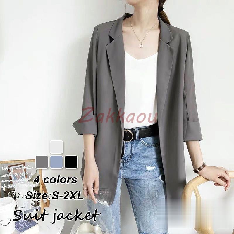 【連携キーワード】:テーラードジャケット レディース 40代 七分袖スーツジャケット 黒 ブレザーコート 薄手シフォン ゆったりアウター 春夏 カジュアル韓国風 通勤OL オフィス