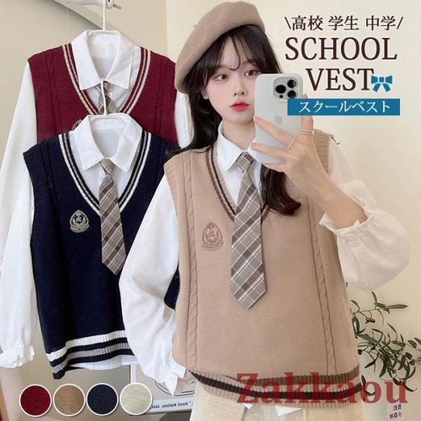 スクールベスト 女子 スクール ベスト 制服ベスト 無地 Vネック 秋 冬 レディース 高校 学生 中学 JK セーター カーディガン