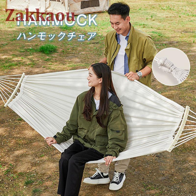 ハンモックチェア ゆらゆら 木棒 収納袋 吊り下げ ハンモック 帆布 キャンバス ロープチェア グランピング アウトドア インテリア 2人 屋内 屋外
