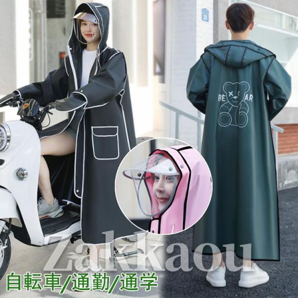 レインコート自転車 通勤 通学レインポンチョ 梅雨対策 撥水 雨具 Aライン ロング レディース メンズ 夜間作業 歩き安心 大きいサイズ ウインドブレーカー