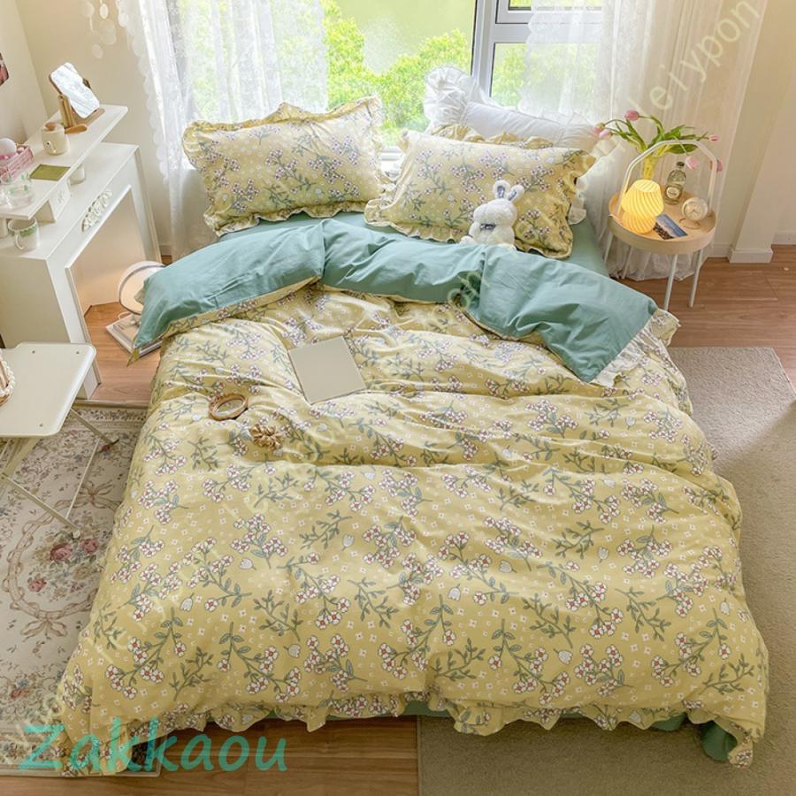 布団カバー シングル 3点セット 花柄 春夏秋 布団セット フリル付き布団カバー 掛け布団カバー かわいい ボックスシーツ セミダブル ダブル 4点セット