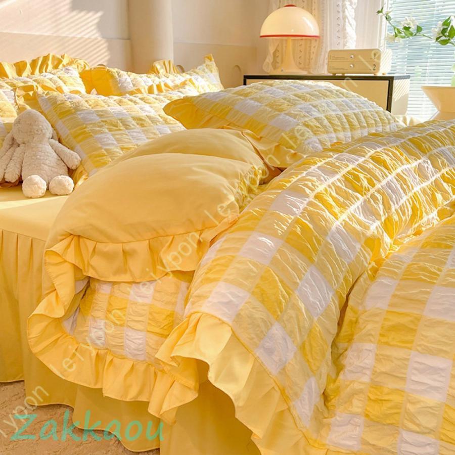 ダブル 4点セット 布団カバー 3点セット シングル チェック柄 フリル かわいい 可愛い 子供 大人 ベッドスカート おしゃれ 北欧 姫系 可愛い 掛け布団カバー