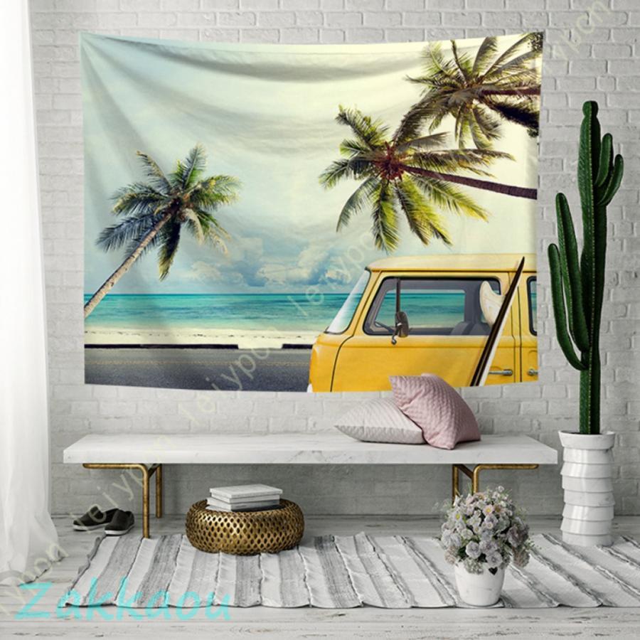 タペストリー ハワイ 海 ビーチ風景 青空 サンセット 太陽 ココナツの木 樹下 休憩 青海 オシャレ 波 布ポスター 多機能 ポスター インテリア ポスター