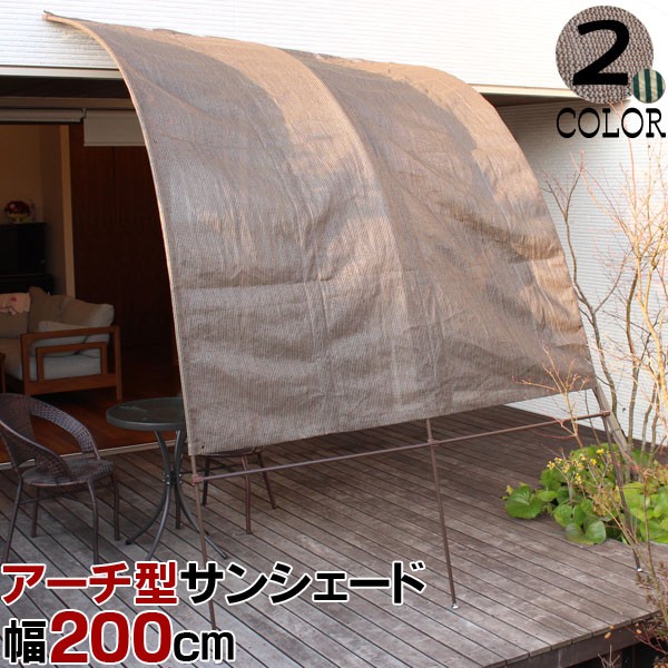 アーチ型サンシェード2m 取り付け 簡単 つっぱり式 幅200cmx高さ250〜290cm 日よけ オーニング たてす 洋風 UVカット 節電 省エネ 目隠し 送料無料