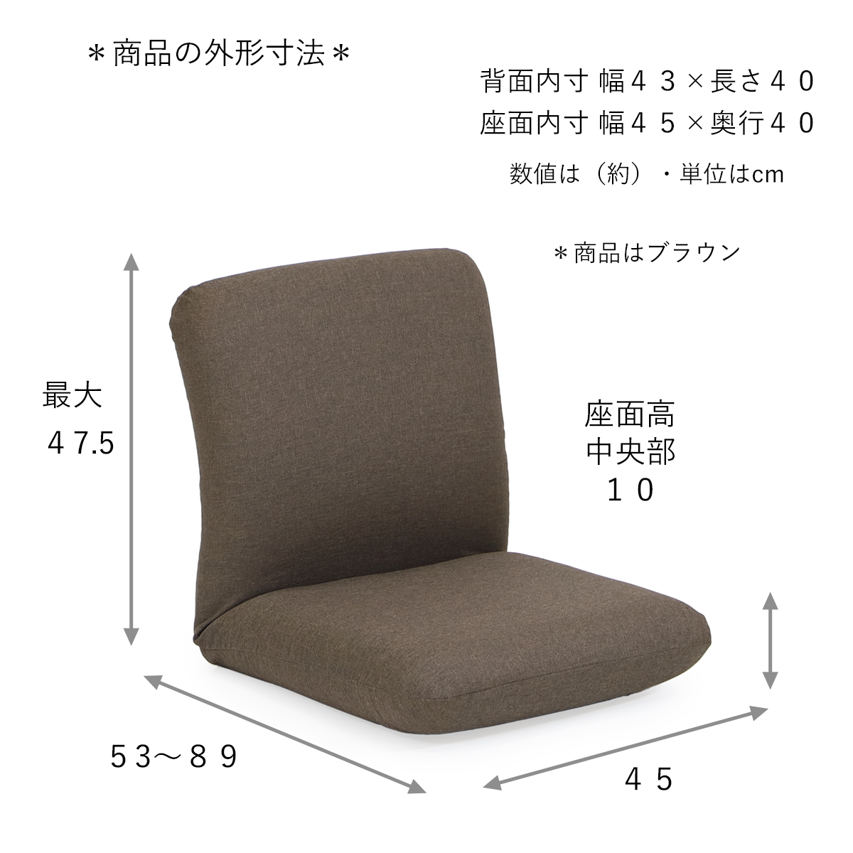 ※座椅子の目的以外に使用しないでください。また、座面以外の部分に座るのは