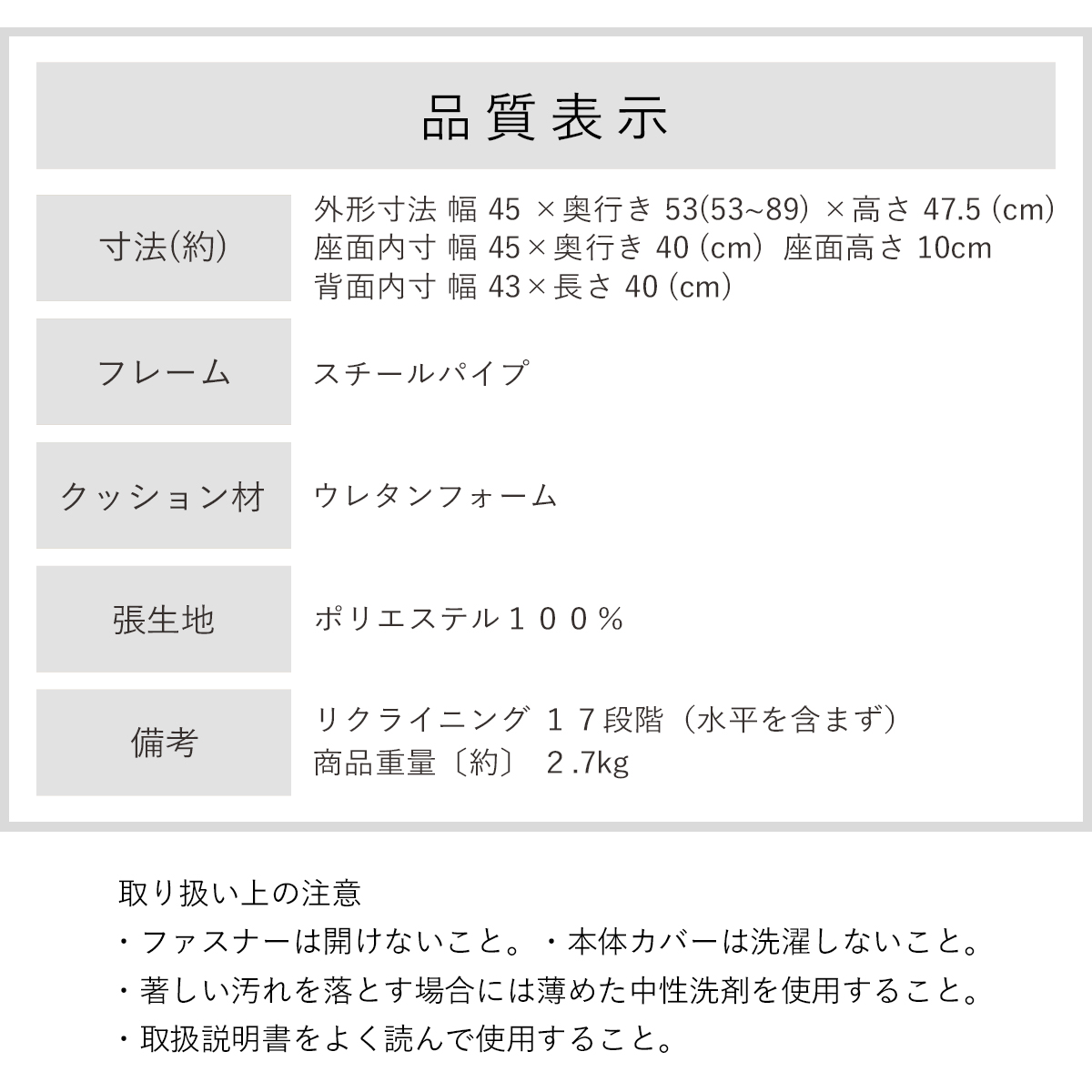 ※本体側地カバーは洗濯できません。(ファスナーは製造都合上のものです。)