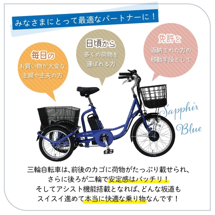 すべての大人に乗ってほしい電動アシスト三輪自転車。