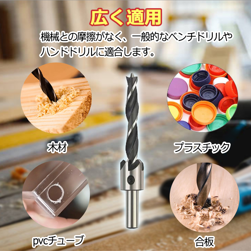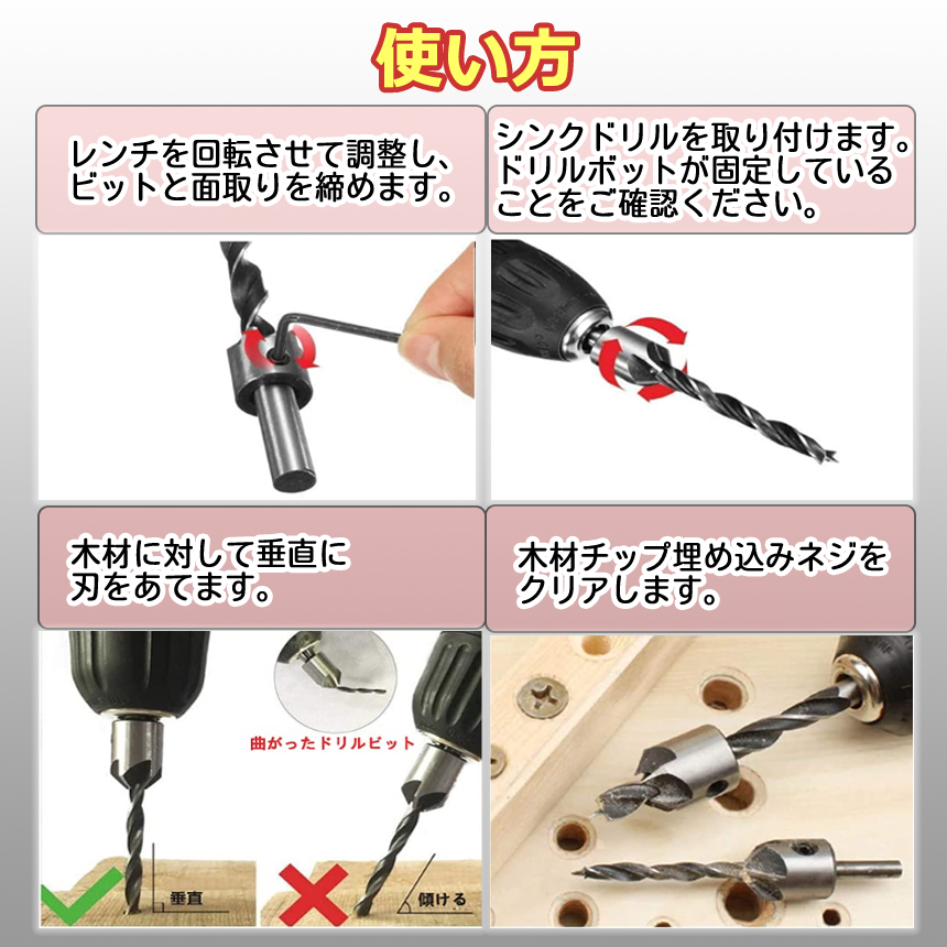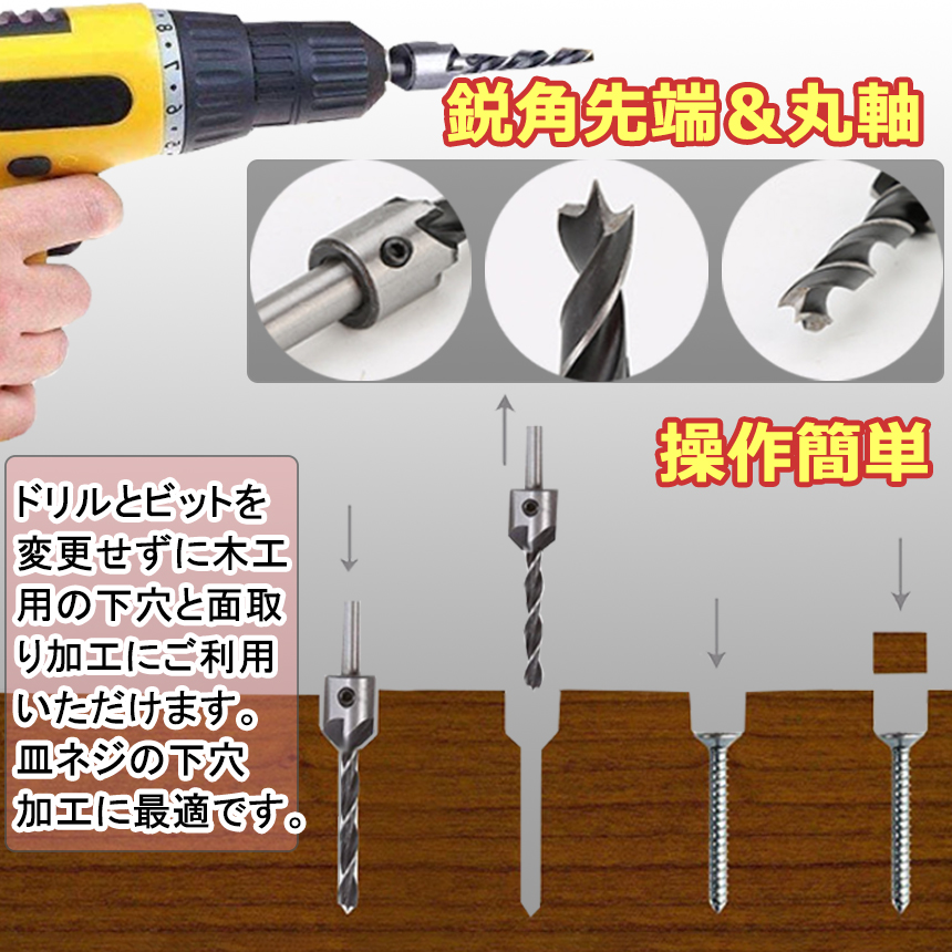 ドリルビットと皿穴ビットの組み合わせは