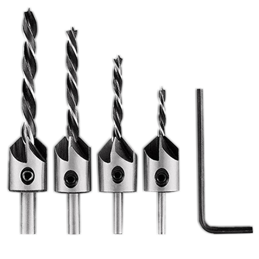 皿穴ドリルビット4本:3mm 4mm 5mm 6mm