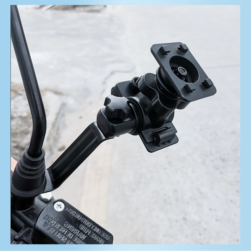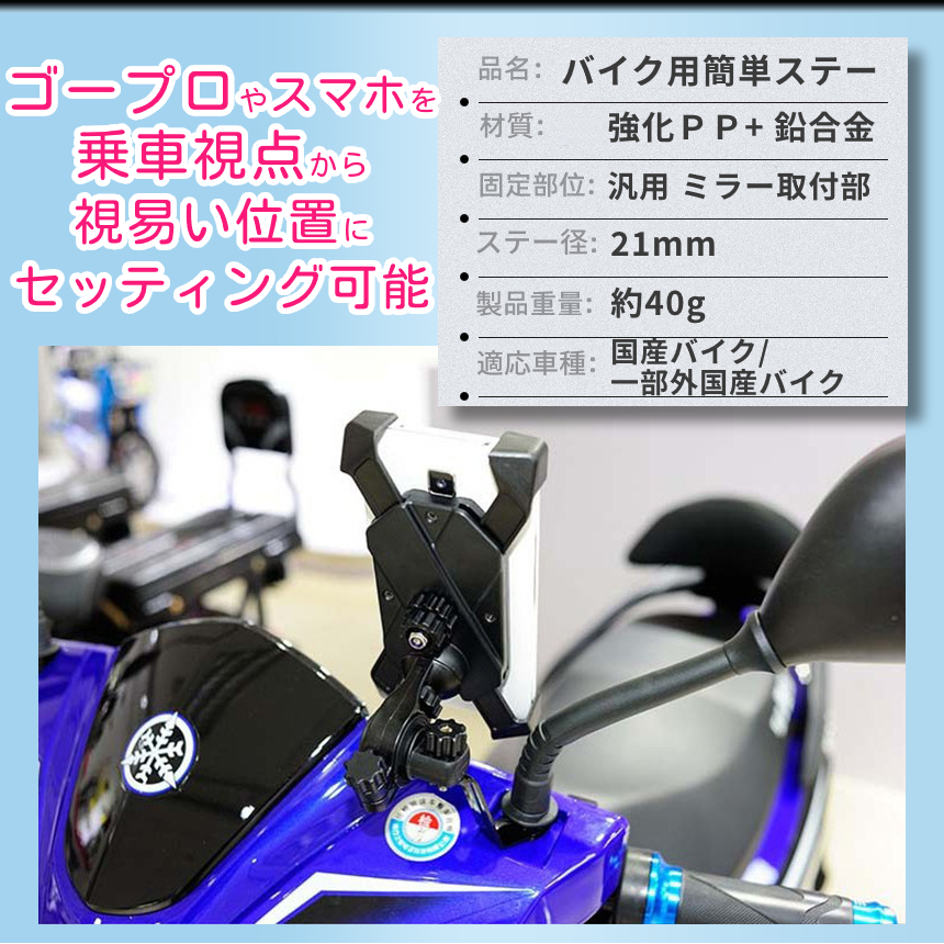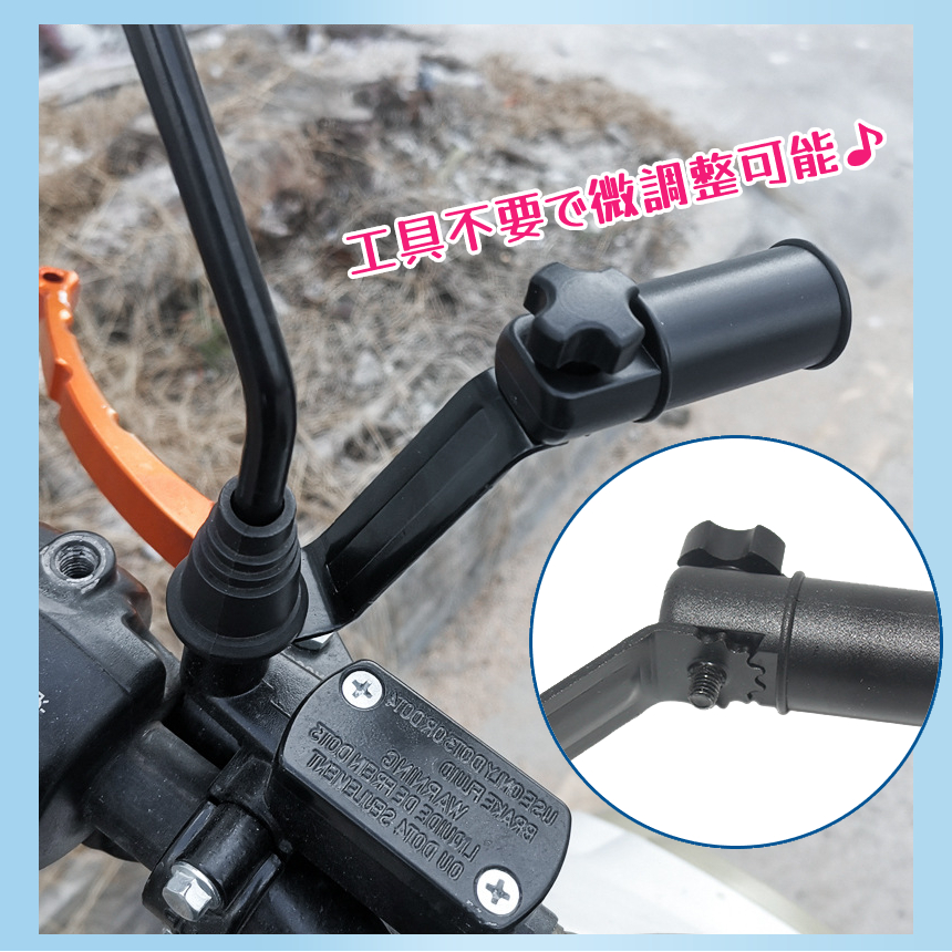スマホスタンドや速度計、補助ミラー等を設置するためのカスタムパーツ。