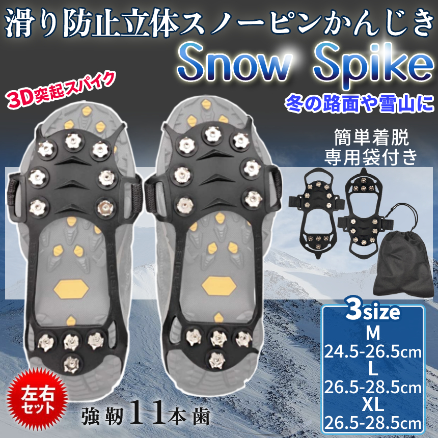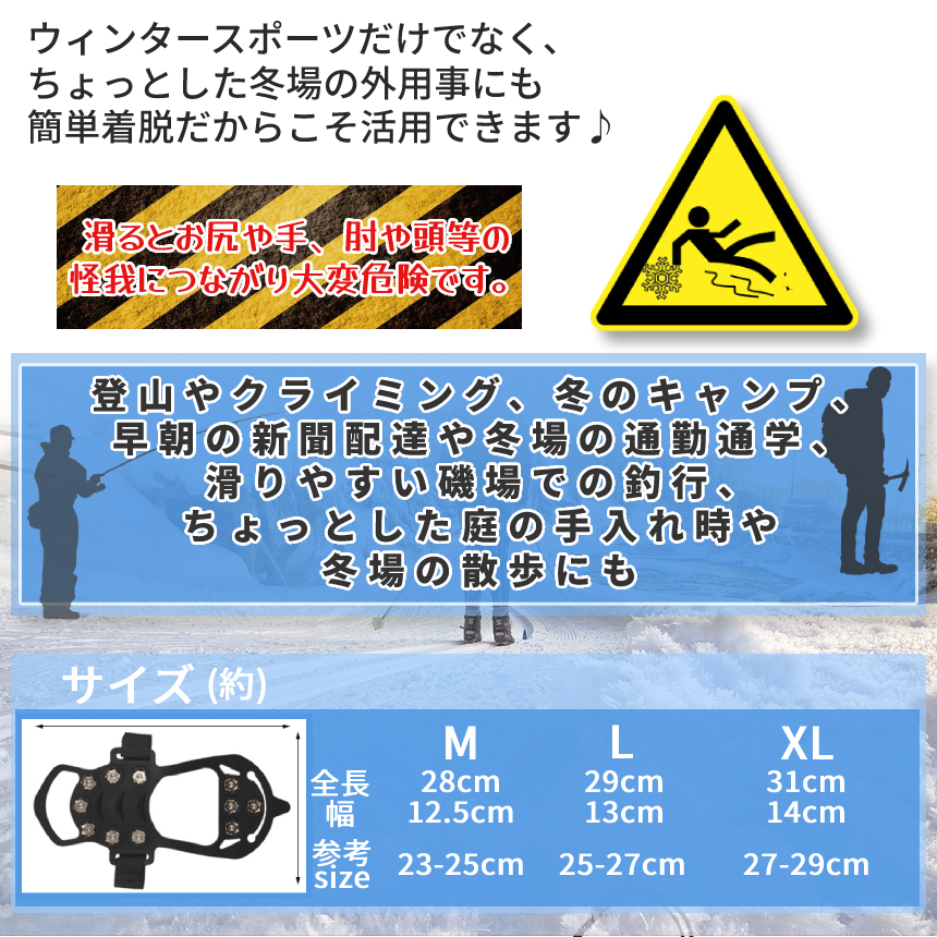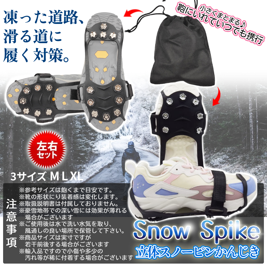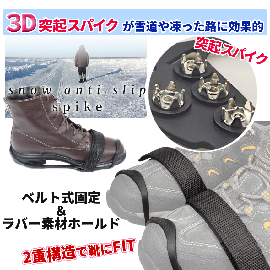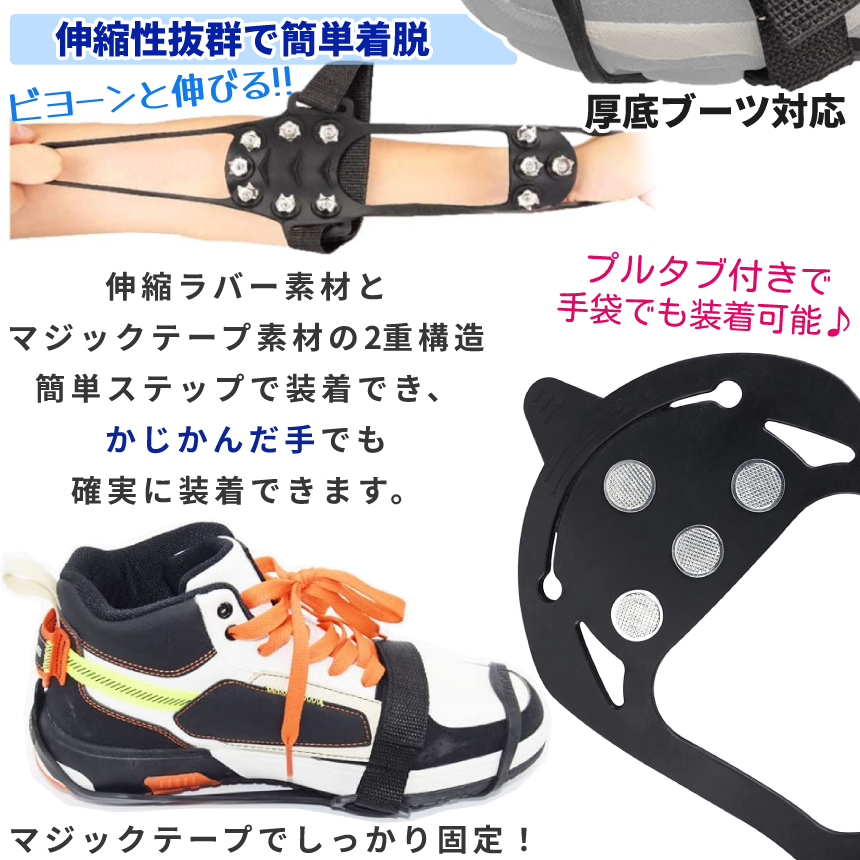 かんじき あいぜん ラバー マジックテープ 登山 10本刃 トレッキング 男女兼用 厚底対応 2重固定 スパイク 雪 冬用 アイゼン 黒 3size 雪道 滑り防止 ASIKAN