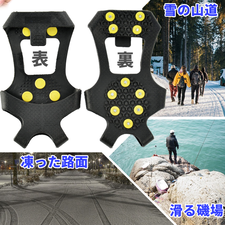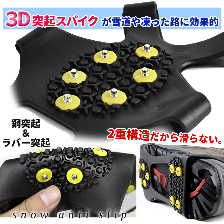 高弾性のゴムと耐摩耗性の高い鋼状ピンの「ラバーかんじき」