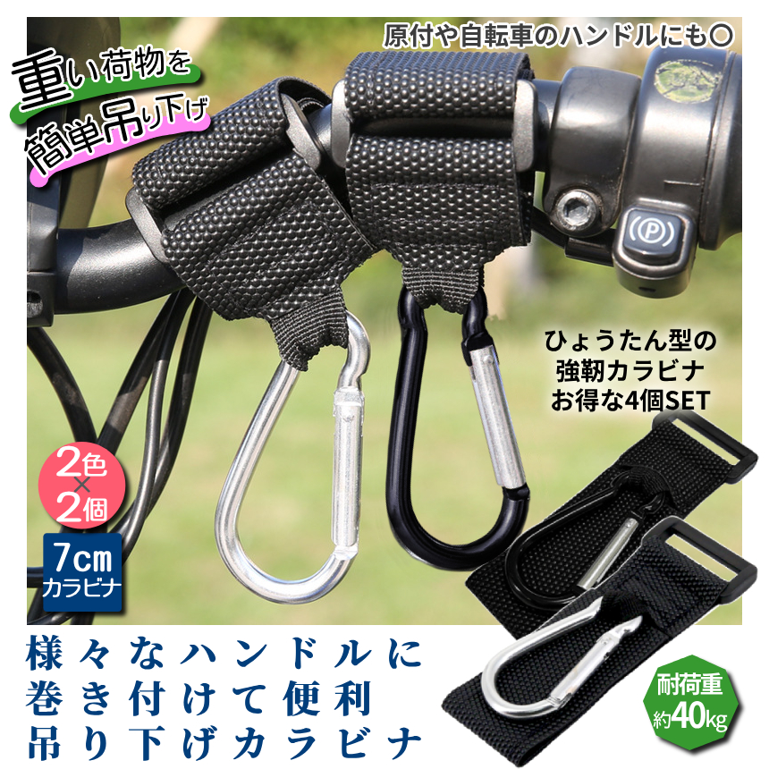 約7cmの強靭カラビナ搭載でたくさんの荷物を吊り下げ可能♪