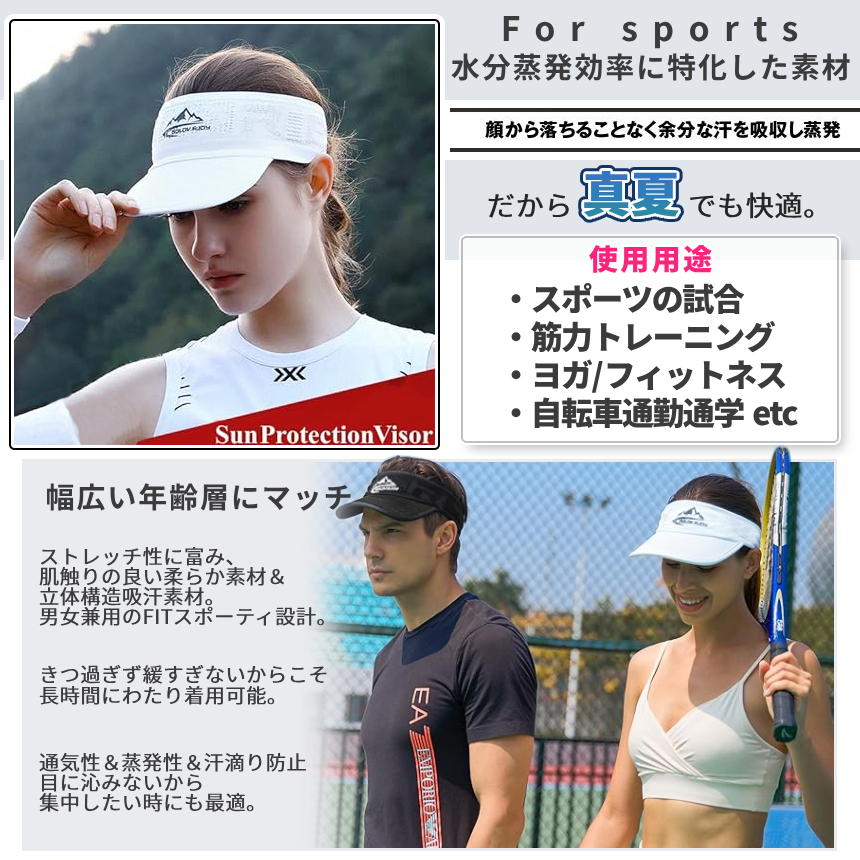 パッケージ内容:スポーツ用日除けサンバイザー2個組