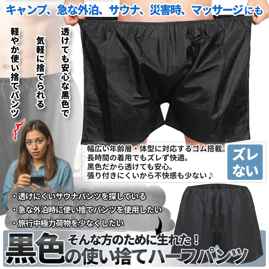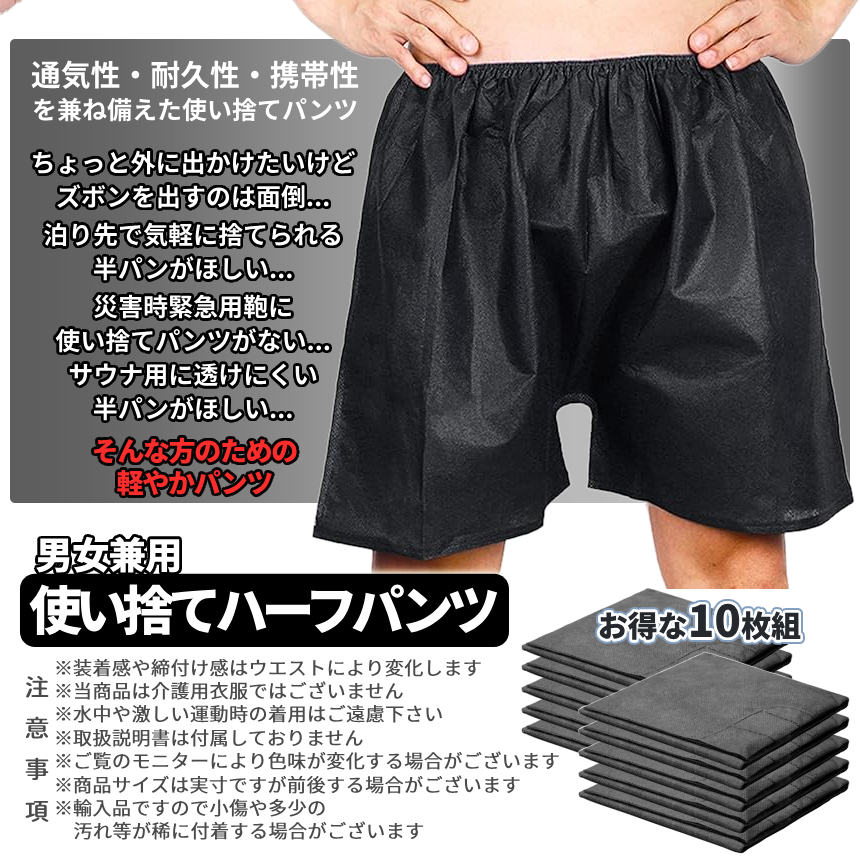 パッケージ内容:使い捨て半パンツ黒×10枚