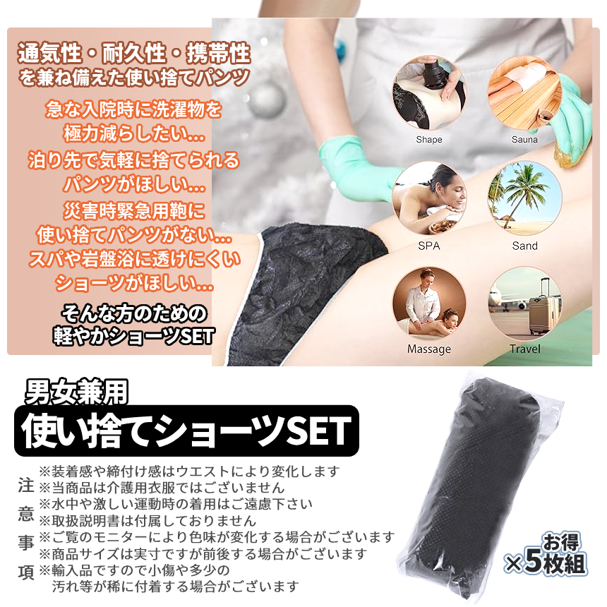 \黒いから透けにくい♪使い捨てショーツ 黒5枚SET/