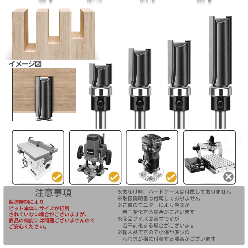 パッケージ内容:木工用トリマーBIT4本