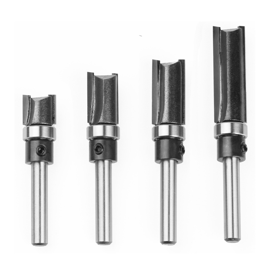ディッシュビット ストレート トリマー ビット 4本組 刃長4種 径 1/4インチシャンク フライス CNC ベアリング付き フラッシュ加工 カッター 切削工具 TORIMBIT