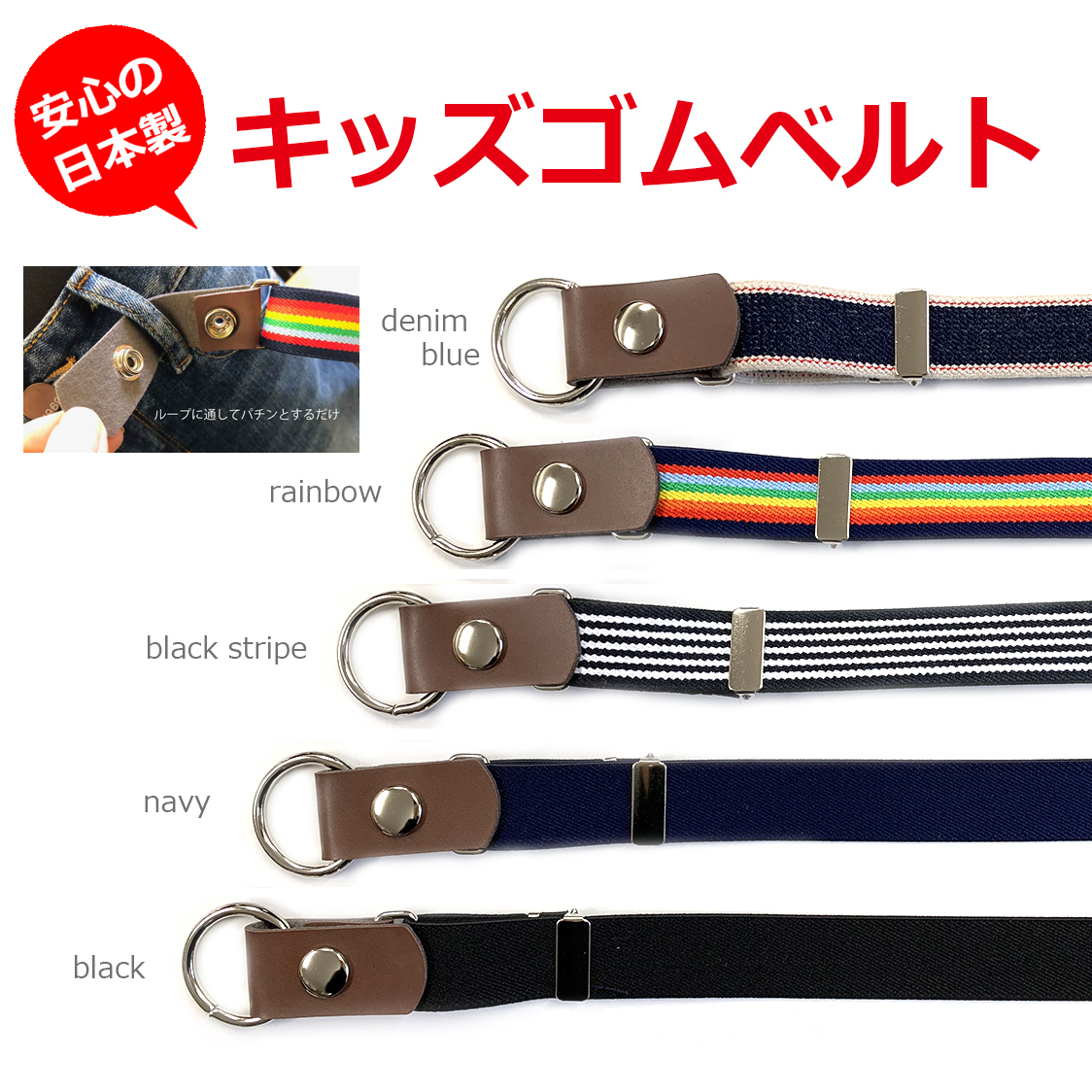 子供ベルト ゴム のびのび キッズ 着脱楽ちん 日本製 フリーサイズ 小 中学校 制服 男の子 女の子 ゆうパケット送料無料
